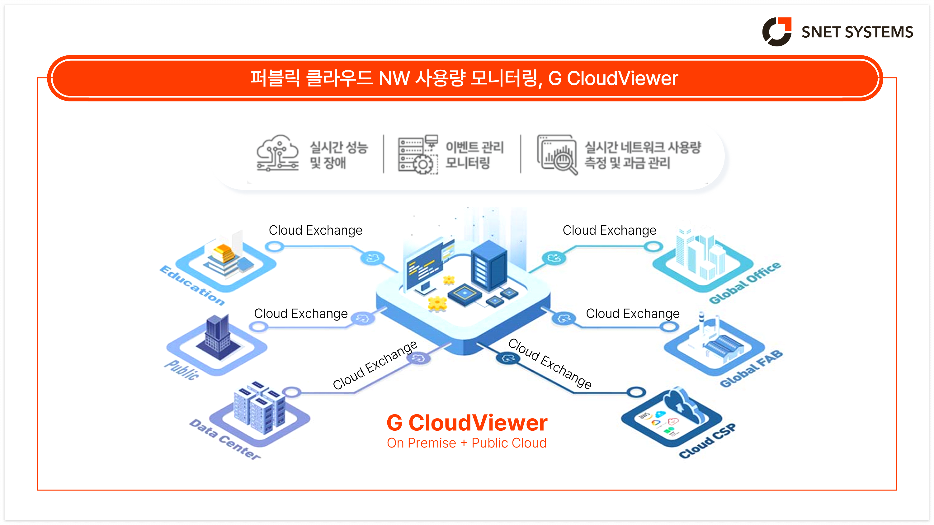 ๋ฐ๋ก ์ด ์ง์ ์์ ์ฃผ๋ชฉํด์ผ ํ ์๋ฃจ์ ์ด G CloudViewer์ ๋๋ค. G CloudViewer๋ ์ฌ๋ฌ ๊ฑฐ์ ์ฌ์ ์ฅ์์ ์ด์ ์ค์ธ ๋คํธ์ํฌ ์์์ ํผ๋ธ๋ฆญ ํด๋ผ์ฐ๋ ํ๊ฒฝ์ ๋คํธ์ํฌ ์ฌ์ฉ๋์ ํตํฉ์ ์ผ๋ก ๊ฐ์ํํ๊ณ ๊ด๋ฆฌํ ์ ์๋ Public Cloud ๋คํธ์ํฌ ๊ด์ ์๋ฃจ์ ์ ๋๋ค. ํ์ ๋ฐ ์ฅ๋น ์ฑ๋ฅ ๊ด๋ฆฌ, ์ฅ์ ๊ด๋ฆฌ, ํผ๋ธ๋ฆญ ํด๋ผ์ฐ๋ ์ฌ์ฉ๋ ์ธก์ ๊ณผ ๊ณผ๊ธ ์ ๋ณด ์ ๊ณต๊น์ง ํตํฉ์ ์ผ๋ก ์ํํ๋ฉฐ, ๋ฉํฐ ๊ฑฐ์ ·๋ฉํฐ ํด๋ผ์ฐ๋ ํ๊ฒฝ์์๋ ์์ ์ ์ธ ๋คํธ์ํฌ ์ด์์ ์ง์ํฉ๋๋ค.