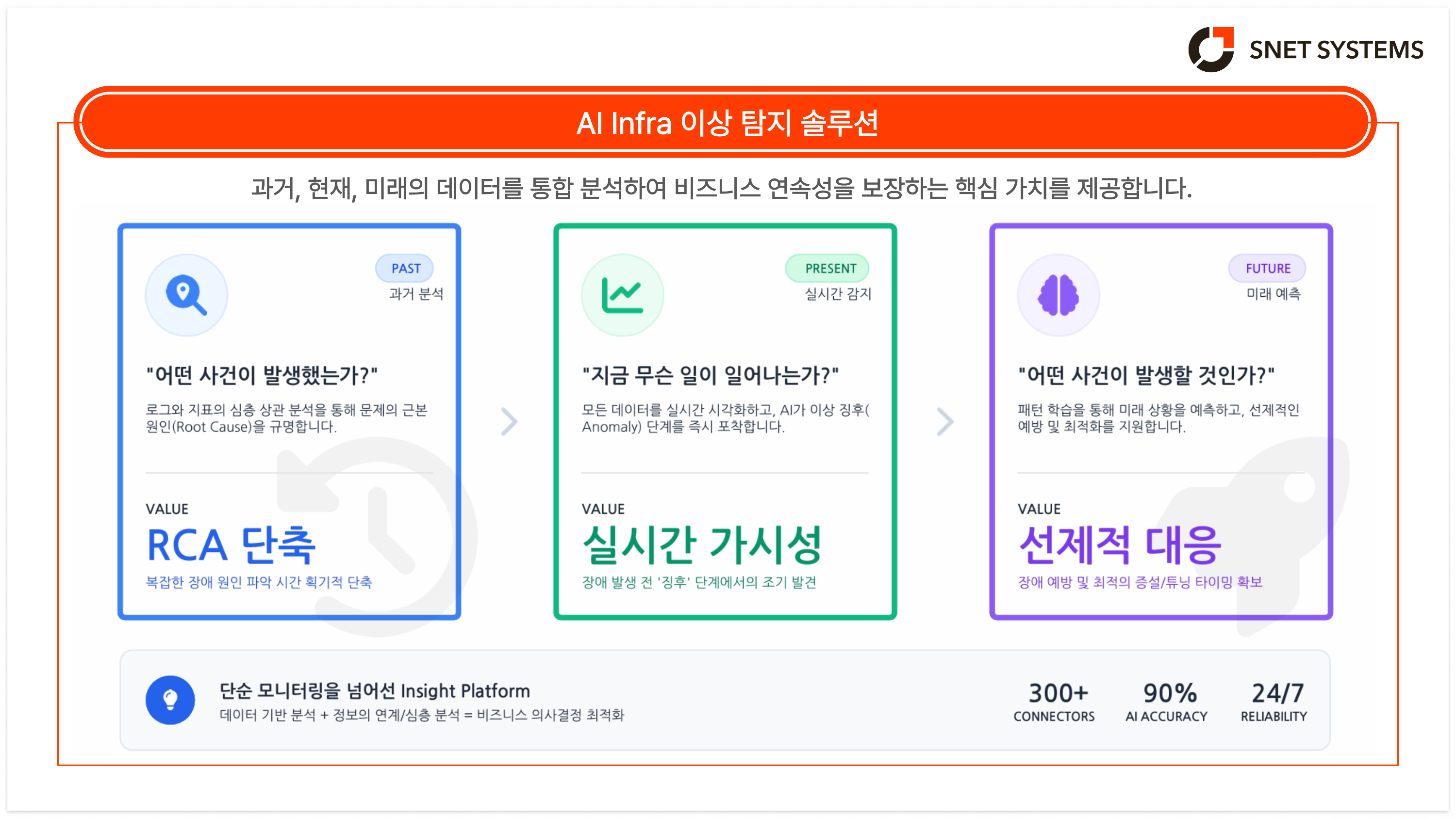 νΉν ν΄λΌμ°λ, λ€νΈμν¬, μλ², 보μ μ₯λΉ λ±μΌλ‘ ꡬμ±λ ICT μΈνλΌλ ꡬ쑰μ 볡μ‘λκ° μ§μμ μΌλ‘ μ¦κ°νκ³ μμ΅λλ€. μ΄λ¬ν νκ²½μμλ μ¬λμ΄ λͺ¨λ λ°μ΄ν°λ₯Ό μ€μκ°μΌλ‘ κ°μνκ³ μ΄μ μ¬λΆλ₯Ό νλ¨νλ λ° λΆλͺ ν νκ³κ° μ‘΄μ¬ν©λλ€. μ΄λ‘ μΈν΄ AI κΈ°λ° μ΄μ μ§ν νμ§μ μμΈ‘ κΈ°μ μ μ νμ΄ μλ νμ μμλ‘ λΆμνκ³ μμ΅λλ€.